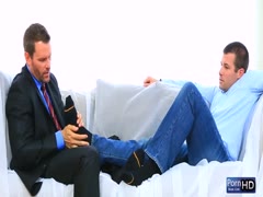 Lovely gay enjoying caressing his foot