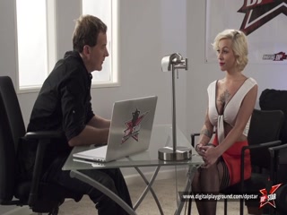 Young blond with big boobs gets pounded live at