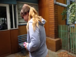 Lovely plump by a pussy hairy, pissing on the street