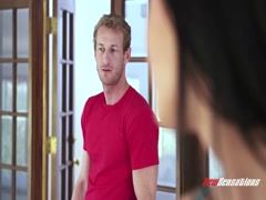 Blonde big tits sexy curve caressing GF then fucking deep