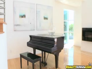 Busty babe taking on a big black dick
