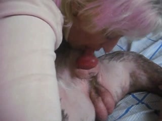 Dirty MILF sucking dog's dick free