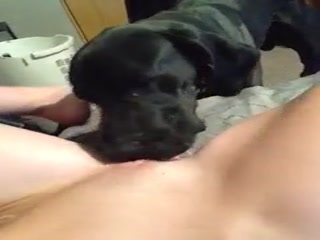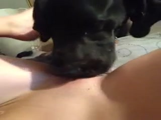 Cute dog licking her pussy - Animals porn