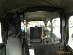 Blonde slut sucking hard in fake taxi