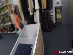 Redhead young girl ridding in old shop hidden webcam