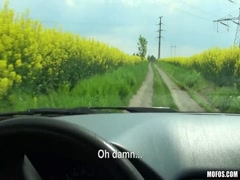 Big tits slut fucks her driver
