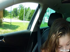 Skinny blonde teen fun with strange driver man