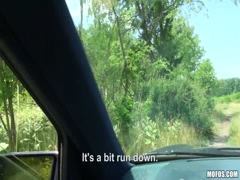 Skinny blonde teen fun with strange driver man