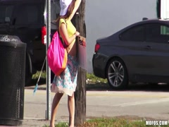 Amateur young babe fucks her new friend on his car