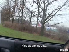 Putting her tight pussy amateur in car
