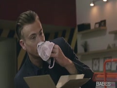 Blonde sexy loves doggy style in office room