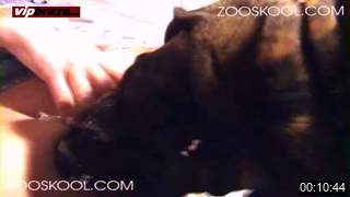 Hot sex with a dog and a slender babe