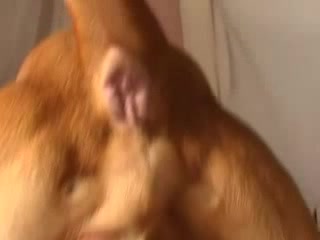 A Brunnette Sucks His Dog until ejaculation
