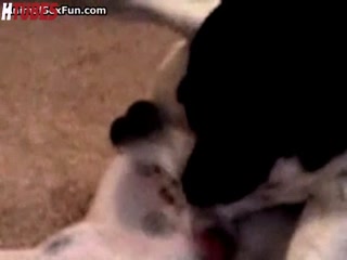 big tits girl try lick cock dog