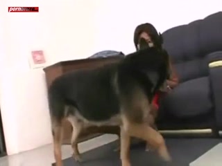 Crazy masked girl sucking, licking and fucking dog - animal free hd