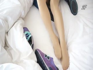 Asian Courtney masturbates with purple dildo