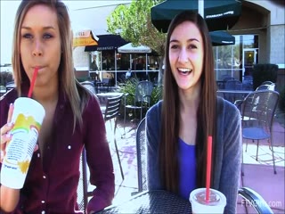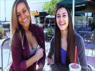 Teen lesbian couple playing outside
