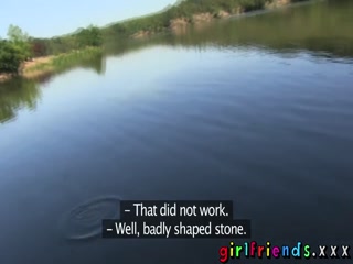 girlfriends cute brunettes skip stones and eat pussy