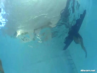 Lesbian MILF bitches having fun in the pool fully clothed