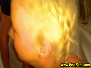 Golden piss drenched slut at bathroom